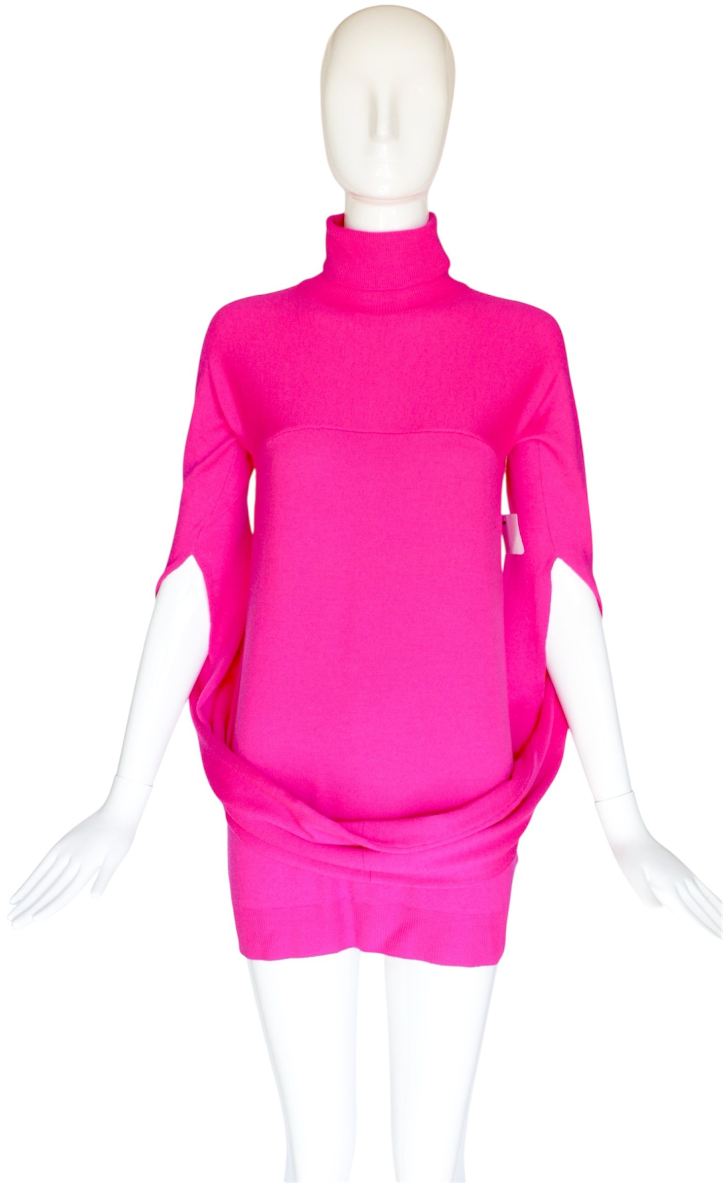 Hot pink Maison Margiela vintage mini dress or top with connecting sleeves.  Sleeves have an opening for the arm and sleeves can be worn in the front or back.  Can be worn as a  minidress or a top, depending on your height.